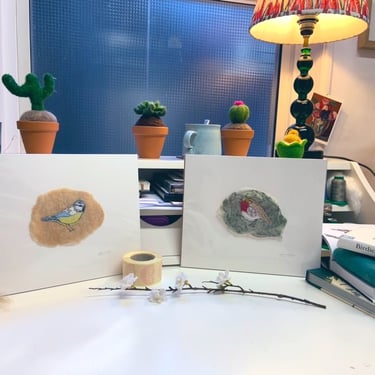 Drawing on the wealth of inspiration from her daily walks, Beverley uses quick sketches to develop embroidered & felted textile art. From garden birds that appear regularly to the green lanes around the parishes, iconic buildings, through to glimpses of bays as she rounds a corner, she captures colour, form & texture to produce beautiful artwork. Available both professionally framed or mounted they are sure to delight.