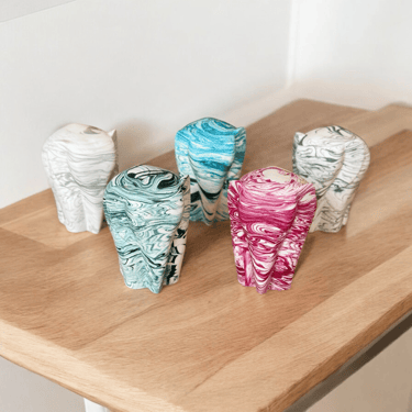 My home décor items are handmade from an Eco Resin called Jesmonite which I particularly like due to the quality and variety of items it allows me to make. I enjoy making brightly coloured marble items which means every item is unique.