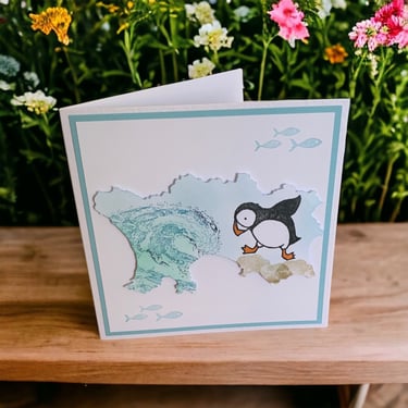 I have been making handmade cards for over 20 years. My current range of cards are based on the shape of Jersey which I have cut out and then decorated using stamps and inks.